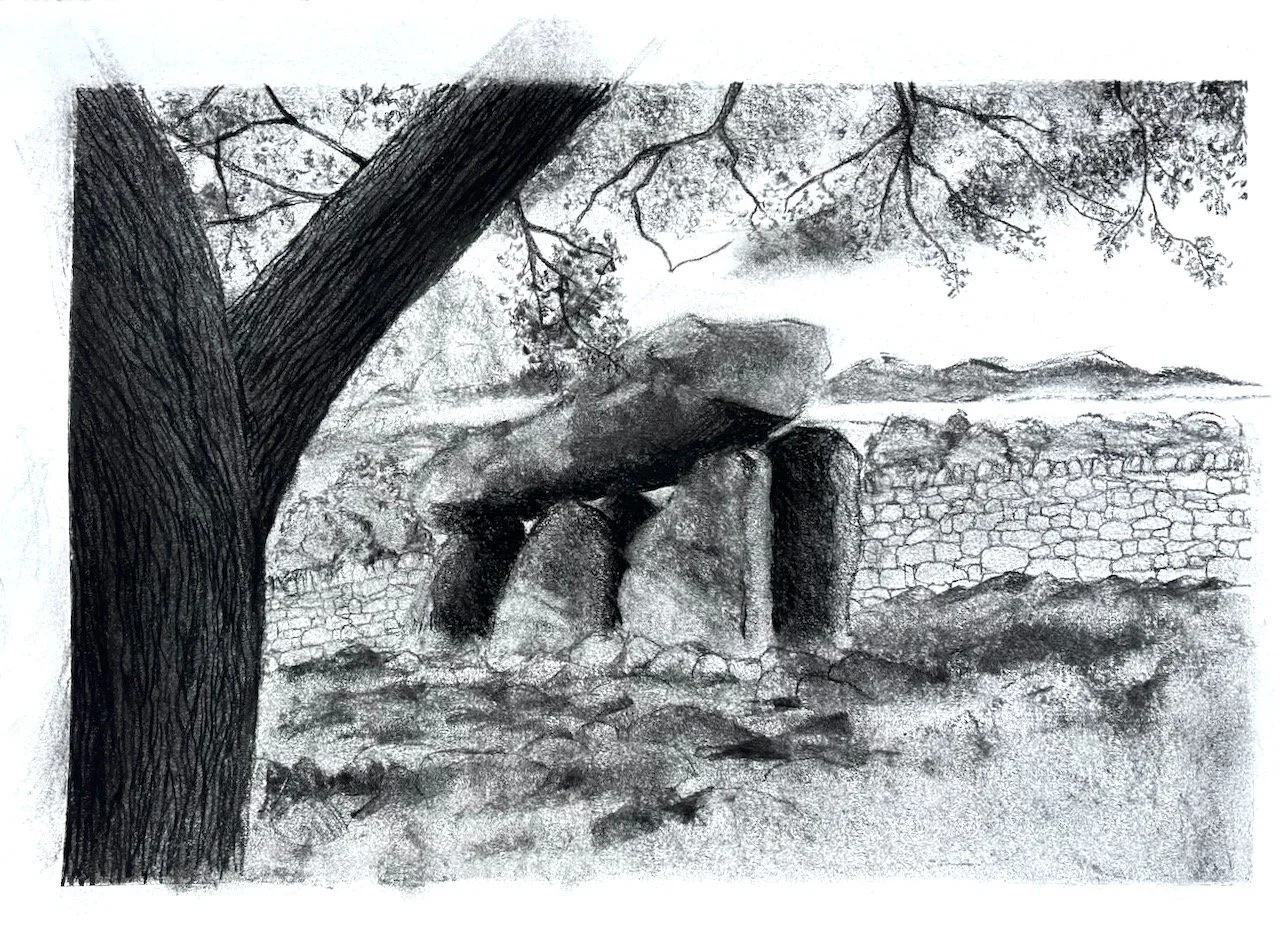 Chamber, Dyffryn Ardudwy. Charcoal and Pierre Noire, 23 x 34cm. Stonehenge 250 gsm white vellum.