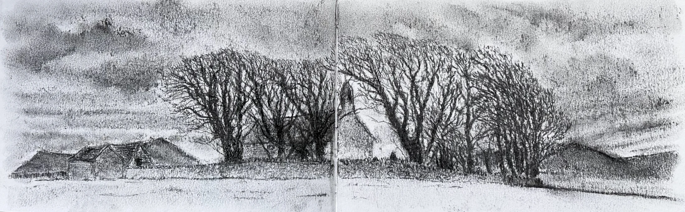 Sketchbook drawing, charcoal on paper, 2025