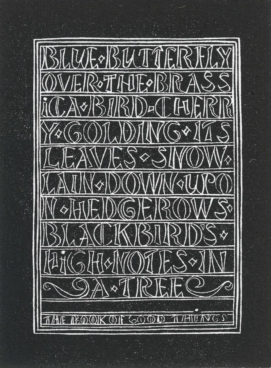 The Book of Good Things 8 Feb Written By Julian Brasington The Book of Good Things, Verse 25Linocut, 2023 Julian Brasington