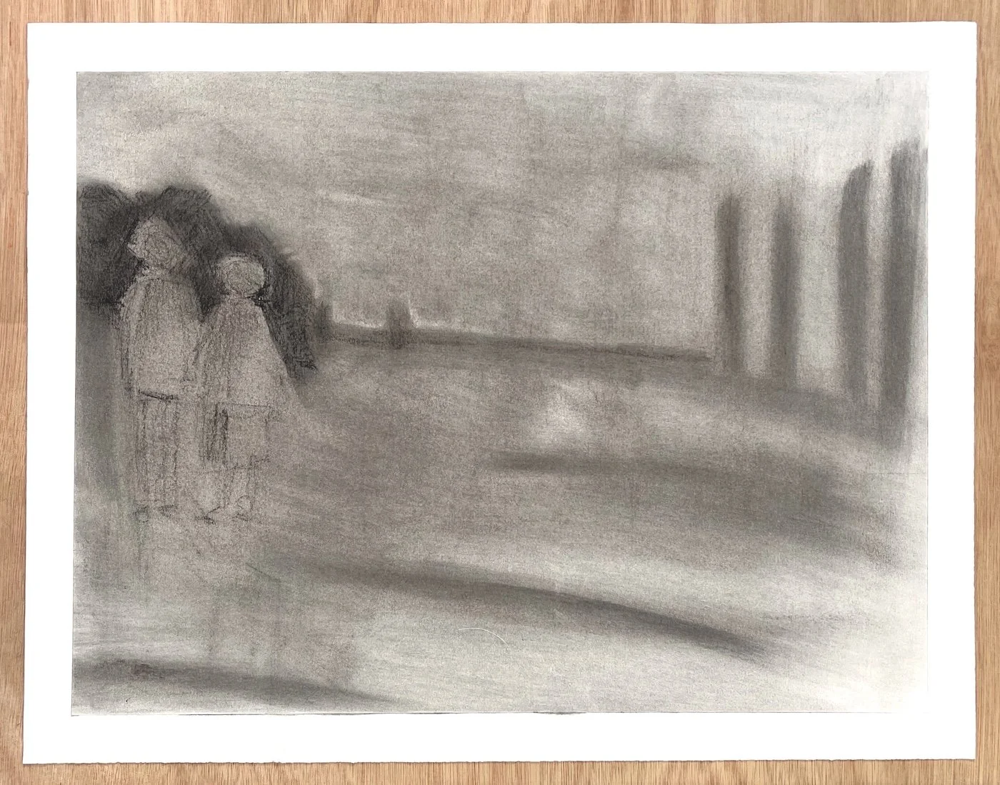 The Walk. (2026). Charcoal on paper, 38 × 49 cm.